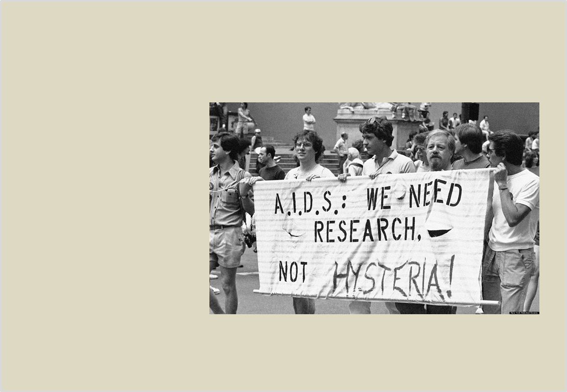 The AIDS Coalition to Unleash Power (ACT UP) is founded to end the AIDS crisis through direct confrontational political action.